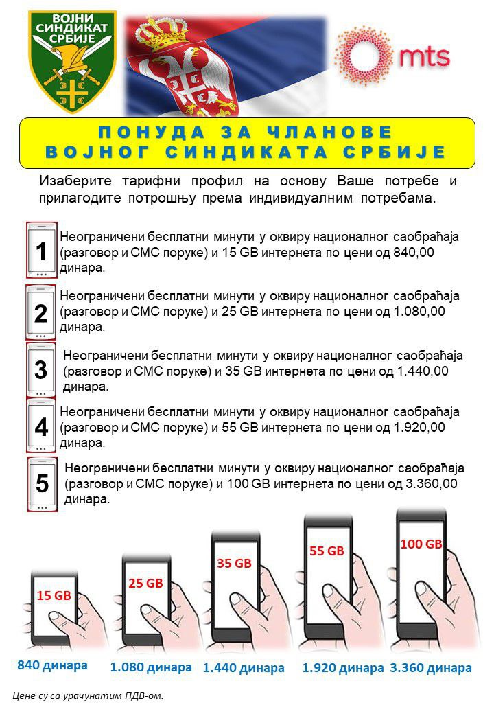 Војни синдикат Србије и МТС су обновили уговор о сарадњи и МТС је за наше чланове понудио пет нових пакета услуга за нове кориснике наше мреже.
