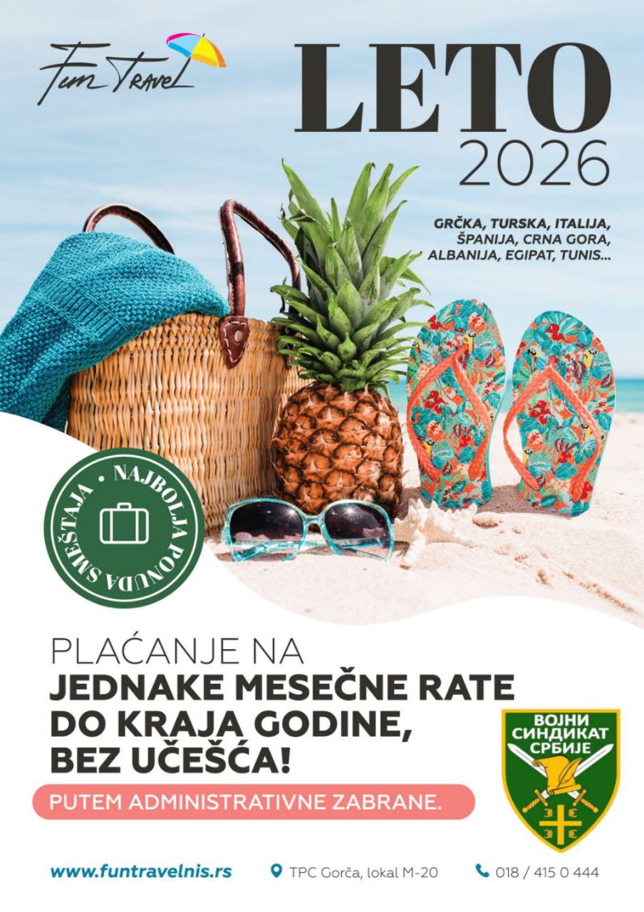 У овој туристичкој агенцији наши чланови могу уплатити летовање на рате преко административне забране БЕЗ УЧЕШЋА и КАМАТЕ до краја 2026 године.