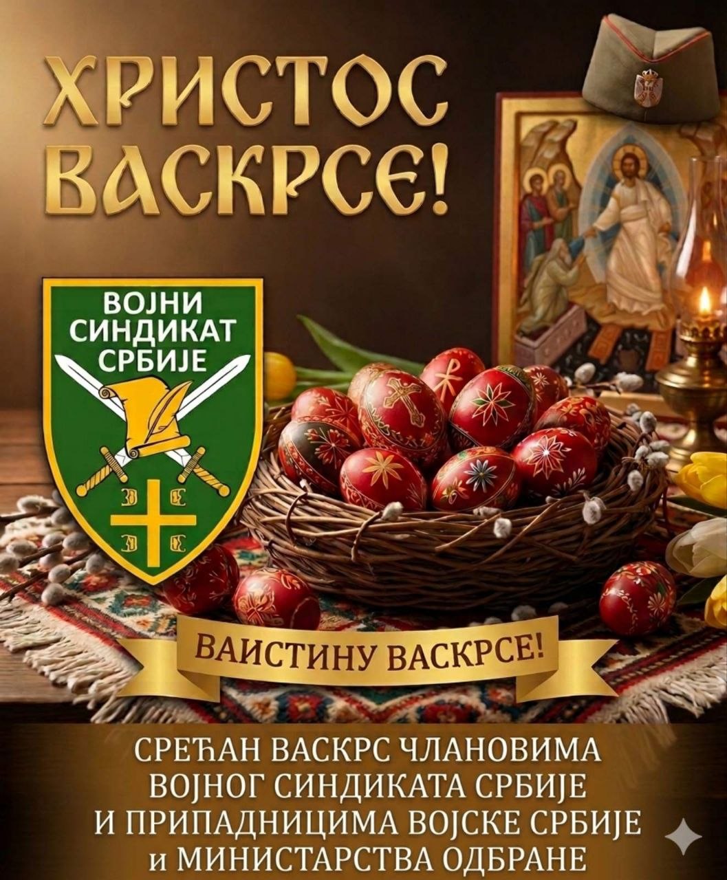 Јединство и солидарност: Као што Васкрс спаја људе у љубави, нека и наш синдикат остане симбол слоге и заједничке борбе за достојанство сваког српског војника.
